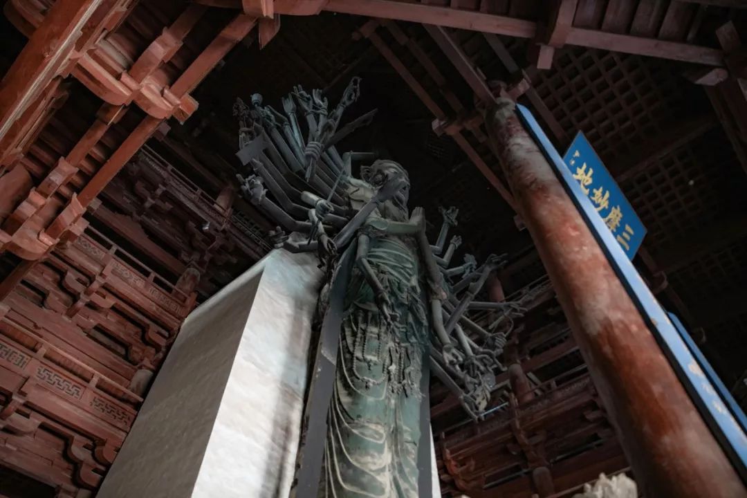 大悲阁里的千手千眼观音,20多米高,是中国最大的铜铸观音;