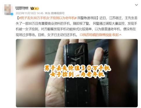 还有2023年的一则热搜:江苏宿迁的王先生丢失了一部价值30万元且有重要商业资料的手机,捡到的人以为是普通老年机……