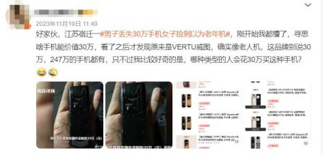 网友:啥手机能价值30万?哦,原来是Vertu手机。