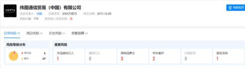 天眼查信息显示,纬图通信贸易(中国)有限公司成立于2011年,是一家以从事批发业为主的企业,法定代表人为徐颖,注册资本为2000万欧元。涉诉关系19条,开庭公告5条。值得注意的是,2021年,该公司由于有履行能力而拒不履行生效法律文书确定义务,已被法院列为失信被执行人,说白了就是“老赖”,并被限制高消费。今年6月,该案件已被列为终本案件,未履行金额高达2.9亿元。