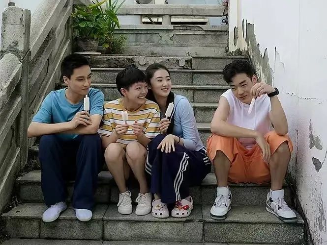 青春期作为收集了现今为止生活的二手资源,和自我生命感知开始觉醒的双重体验阶段,是自身私欲引发的各种在经验范畴尚不能够辨别的情感,开始面对父母的生存规则和生活道理时,二者互相试探、互相迷惑、一阵急过一阵的交相融合的阶段。要走过这一阶段,以前的青春片已经交出了很多例子,有怀旧叙事派的、有现实主义派的、还有奇观过度化的,这部影片之前我最喜欢的近年国产青春片应该是《盛夏未来》(2021)、还有一部剧集叫《风犬少年的天空》(2020)。这三者有一个非常共通的体感,恋·爱比爱情更大。青春群像的恋·爱感,三人行是最难掌控的,不小心就会滑落道德层面。
