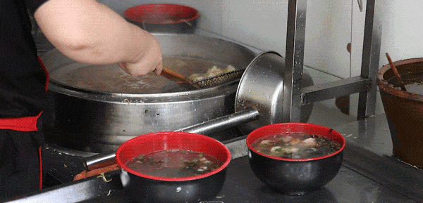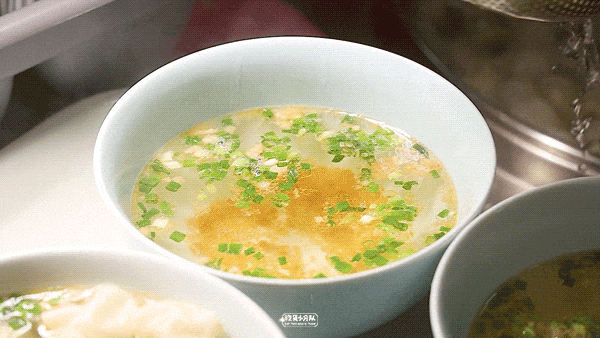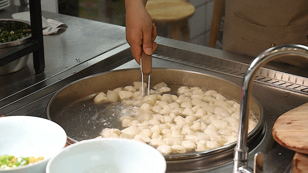 煮馄饨时,锅要大,水要足,但切记不能滚,实际上「泡泡馄饨」是烫熟的,下锅后数着秒,差不多又要沸腾时,轻轻搅动,果断捞起,滑入准备好的汤碗中,香气铺面,食欲满满。黄山馋上品