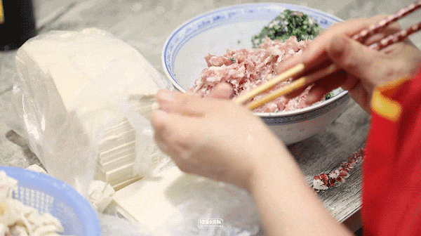 馄饨是每天新鲜现包,阿姨一闲下来就坐下来包馄饨,手速快到3秒包1个。荠菜鲜肉小馄饨