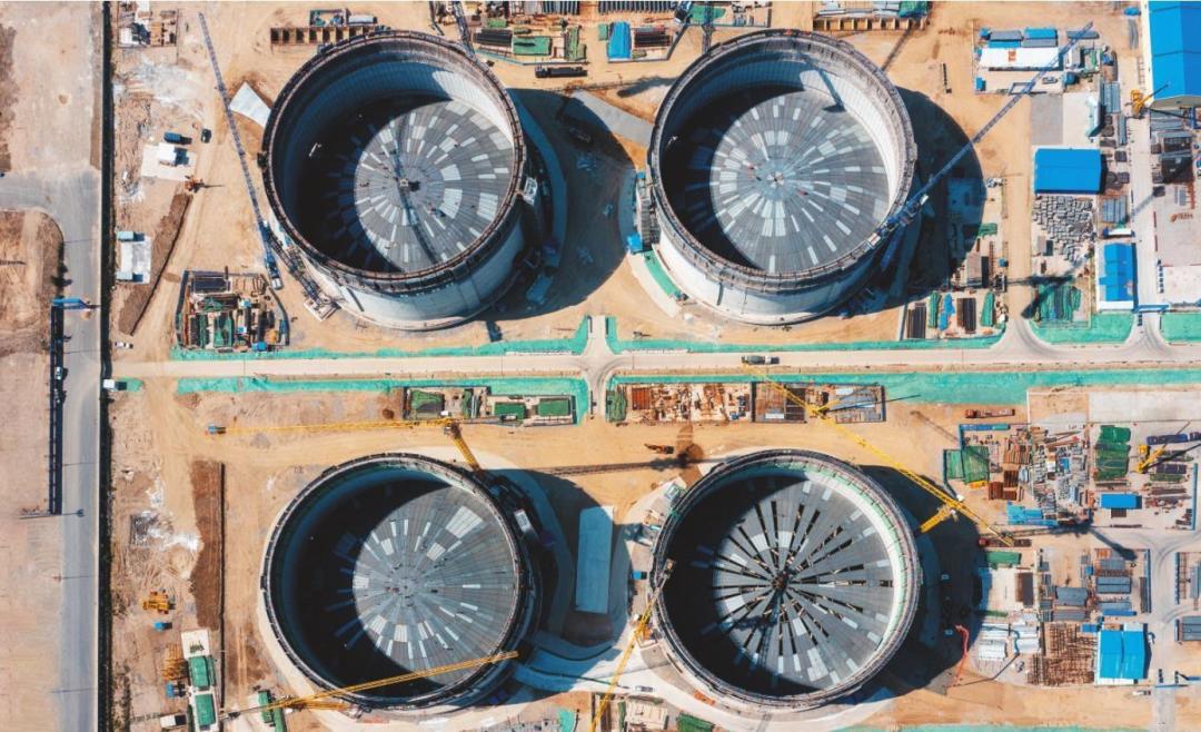 中交营口LNG接收站项目施工现场。傅义增 摄盛夏时节,投资上百亿元的中交营口LNG接收站项目施工现场塔吊高耸、焊花四溅,一派繁忙而有序的场景。中交营口液化天然气有限公司副总经理杨超说:“我们抢工期抓进度,目前工程总体进度近半。”