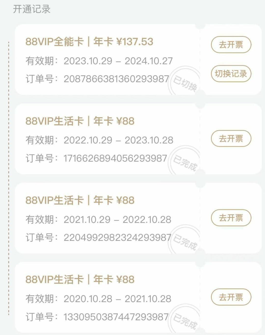 青岛职场人士小徐向记者透露,自2011年注册淘宝以来,她便是平台的忠实消费者,去年一年在淘宝“剁手”891次,总消费额超过4万元。鉴于88VIP会员提供的丰富权益,包括外卖、视频、出行优惠及购物折扣,她自2020年起连续三年成为会员,不仅如此,去年她花费137.53元升级办理了“88VIP全能卡”。