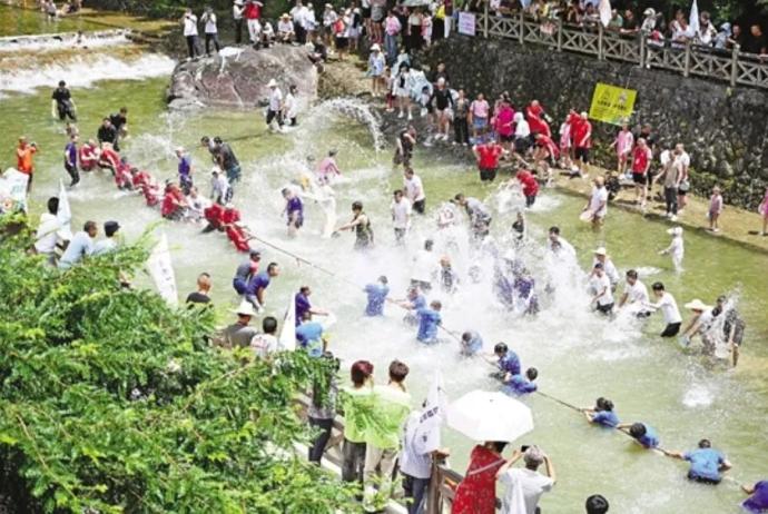 贤良镇借助青山掩映的南阳溪打造亲水活动,是当地今年吸引游客的秘诀。贤良镇相关负责人介绍,他们主要策划了以“‘浇’个朋友”为主题的系列亲水活动,泼水竞赛、浑水摸鱼、水上滚筒、水上拔河等项目让贤良火爆出圈。“贤良亲水季”已成为浙闽边界一个响亮的金字招牌。