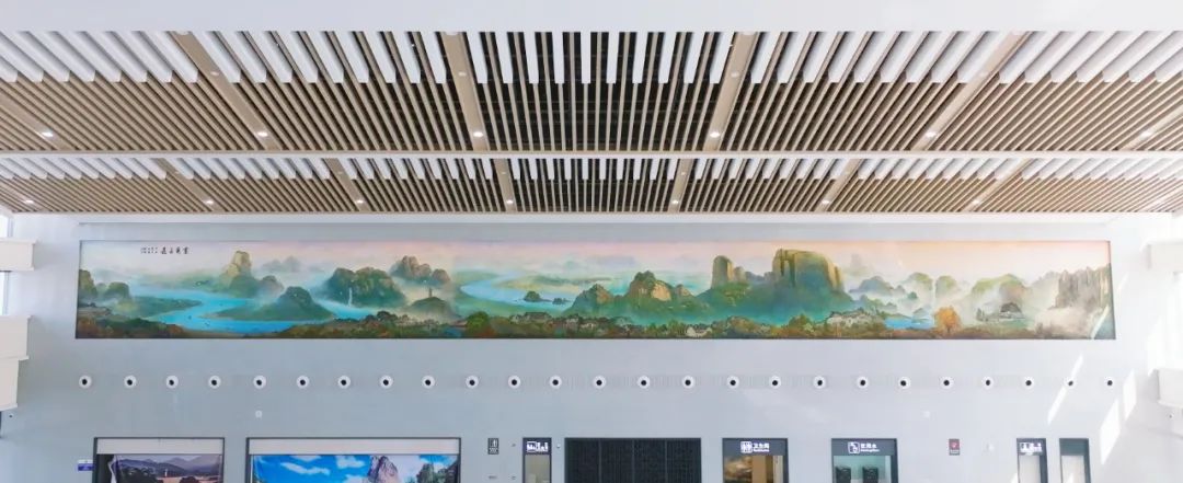 进入候车大厅,一幅巨大的壁画映入眼帘。这幅名为《灵韵永嘉》的瓯塑壁画宽39.85米、高3.8米,由数名瓯塑工艺美术师耗时半年打造而成。把楠溪江、永嘉耕读文化及永嘉县支柱产业等融合起来,构成一幅基调阔远的巨幅壁画,表现了永嘉特有的“诗般山水”壮丽、秀美、雄伟、神奇的风貌。
