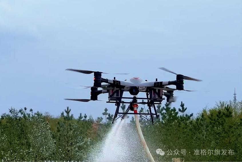作为森林草原防火、城市火灾等领域中的重要救援工具,灭火无人机的机动性极强,能在极短的时间内起飞并迅速抵达火灾现场,不受复杂地形和交通拥堵的限制。无论是高山峻岭、茂密森林还是狭窄街巷,无人机都能轻松穿越。“无人机灭火的精度高、反应速度快、机动性极强,能在极短的时间内起飞并迅速抵达火灾现场,第一时间获取火灾现场的实时信息,为救援决策提供关键依据。”准格尔旗林业和草原事业发展中心主任李志云说。