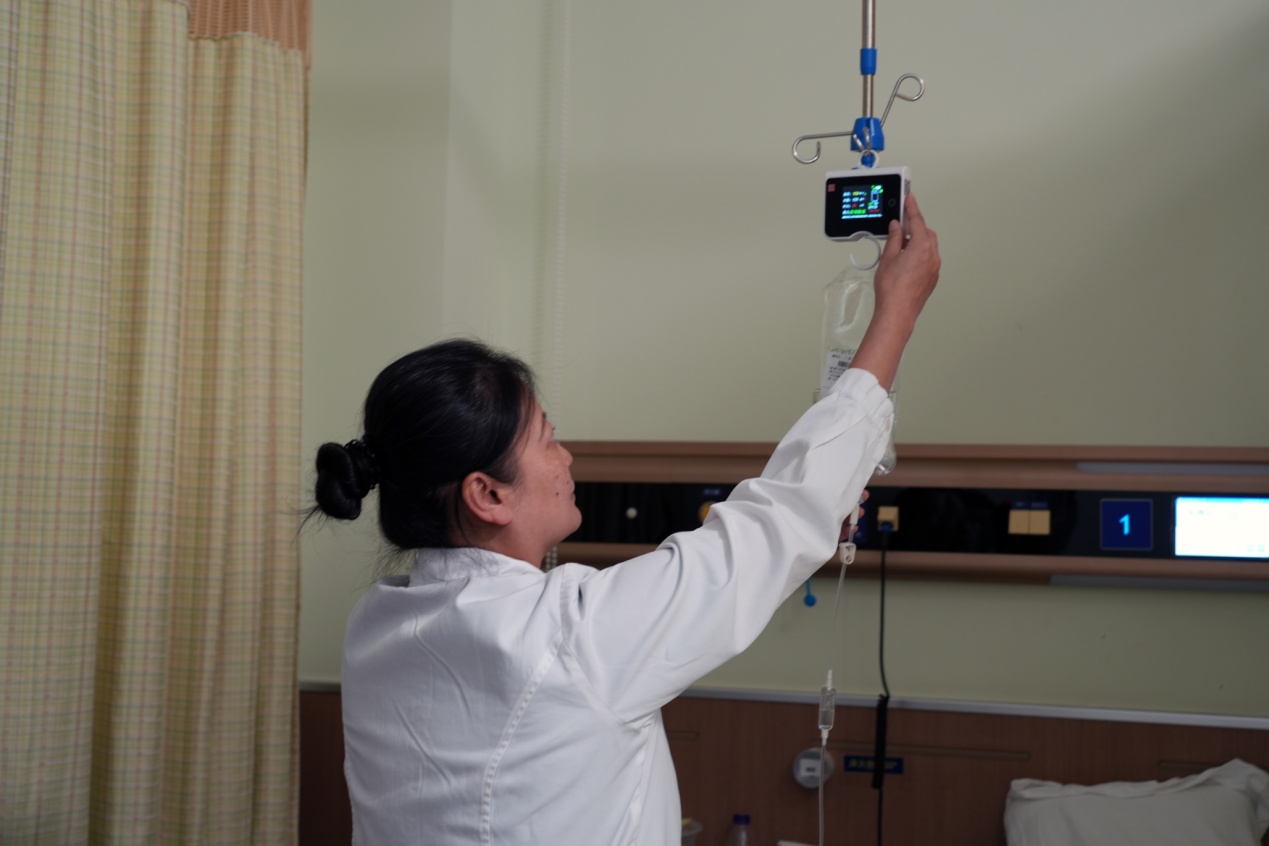 过去,每当输液接近尾声,病患就会摁下床头的呼叫铃提醒护士,铃声此起彼伏,尤其在深夜,响亮的铃声会打扰其他病人休息。而现在,病区变得安静有序,当输液量还剩5毫升时,负责该病床的护士便能提前收到系统自动发出的提示,从而及时进行更换。