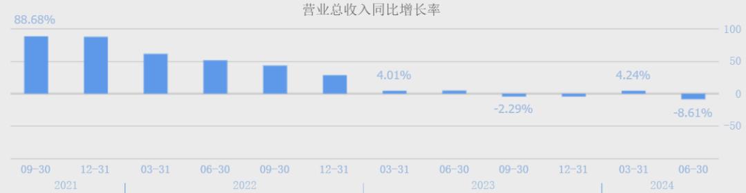 (数据来源:同花顺网站)可以看到,进入2023年后的华熙生物的营收情况,简直就是突然换了一家公司一样,增速出现断崖式暴跌,然后很快就出现了下滑,再然后跌幅扩大。