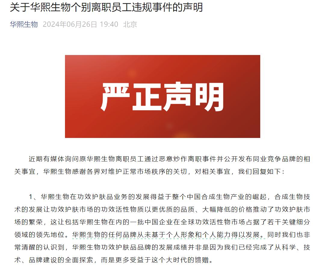 华熙生物方面则在公众号发文回应,公司已经掌握相关个人侵犯知识产权、违反竞业禁止约定、违法违规套取经济利益的全部事实。