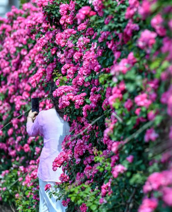 左图:初夏,在红河弥勒太平街道阿乌村委会吉成园林景观月季基地,一树又一树的曼妙月季层层叠叠,风中弥漫的花香像是一封“夏日来信”。孔德云 摄右图:每年4月至5月,昆明的蓝花楹陆续盛开。从空中俯瞰,道路两侧的蓝花仿佛形成了一条隧道,车辆就在花海“隧道”中穿行。崔永江 摄
