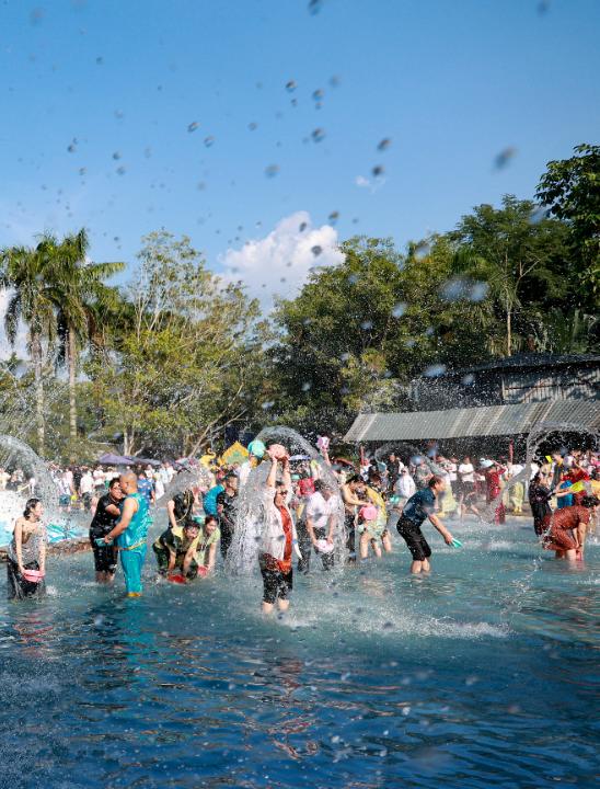 左图:北国冰封之时,西双版纳等地依然“天气常如二三月”,游客可以在傣族园泼水广场纵享“天天欢度泼水节”。胡妤雅 摄右图:近年来,主打“避暑旅居”牌的曲靖吸引着全国各地的游客纷至沓来。孙文来 摄