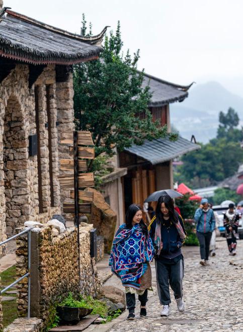 左图:行走在丽江玉湖村,一座座朴素的火山岩垒砌的纳西民居掩映于红花绿树之间,写满岁月痕迹的石板路向远处延伸。新华社记者 陈欣波 摄右图:夕阳西下时,橘黄色的阳光洒落在曲靖土瓜冲村修缮一新的土坯房上,为整个村落染上了一层温暖的色彩。通讯员 马岱玺 摄