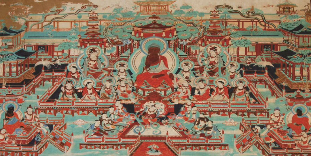 深藏于茫茫大漠峡谷峭壁间,榆林窟现有洞窟43个,目前开放11个,特窟25窟《观无量寿经变》悬挂于人民大会堂,足见证其伟大。《水月观音》图就是“玄奘夜渡葫芦河”的真实写照。