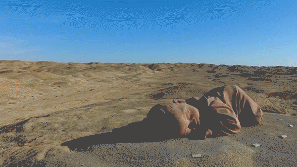来这里,你可以看低矮的山丘变成海浪,《戈壁方舟》正乘风破浪,天地间空旷的荒芜中出现了《海市蜃楼》《汉武雄风》从历史中走来,身旁《大地之子》安祥酣睡,走近它们举起手机不用怀疑,出片率绝对100%!