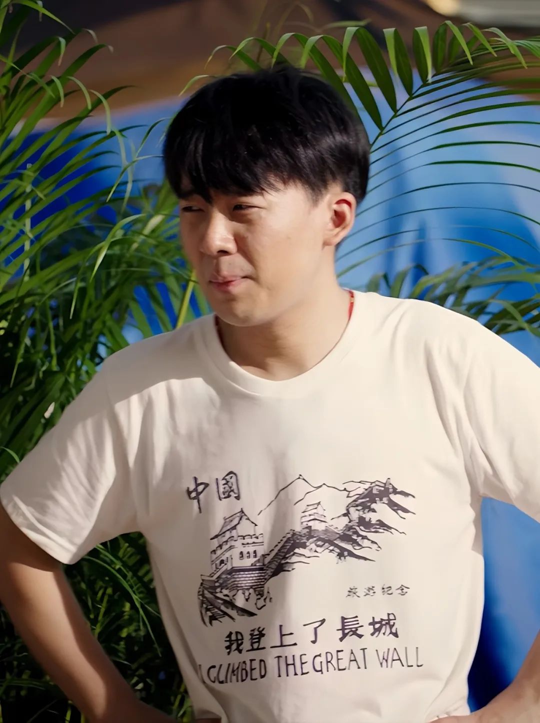 /图片来源于网络初入社会的沈星,穿搭以T恤搭配休闲裤或牛仔裤为主。剧集开头出现的好几款T恤都是纪念品,比如“我登上了长城”旅游纪念T恤、万海机电职业技术学院第9届校园技能大赛优秀生纪念T恤,还有其舅舅沈建东建筑公司的“建东建筑工程”工服T恤。