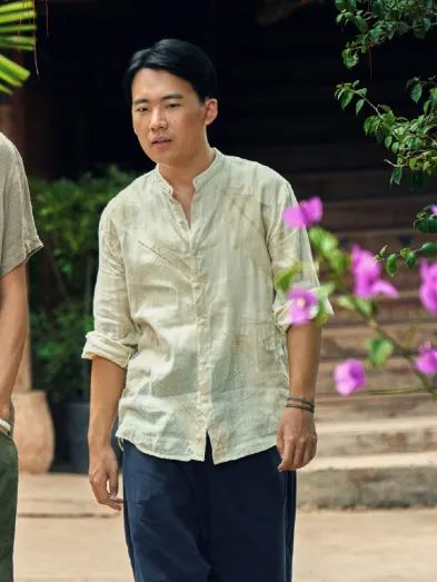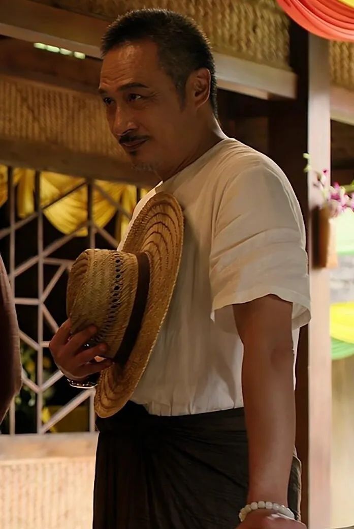 吴镇宇饰演的猜叔是边水老板,也是游走在灰色地带杀伐果断的大佬。作为一个有身份的大佬,猜叔的着装不像手下那么花哨,以棉麻材质的短袖衬衫为主,色调皆为无彩色,他尤其钟爱白色。外出时,猜叔常见的着装是对襟圆领衬衫搭配笼基,佩戴白玉菩提手串和贵重腕表,个别场合头戴遮阳草帽。
