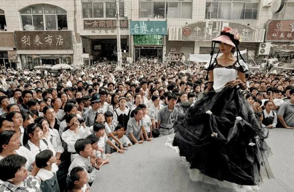 大街上随处可见巨大的外国商品广告牌,追“星”文化开始活跃盛行,穿着款式新颖的“洋婚纱”成为时尚,以及海水浴场活力四色又自信满满的青岛“大嫚”……彼时的青岛青春洋溢,“开放”之风遍布每个角落。