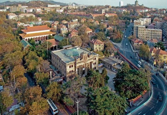 俯瞰鱼山路青岛美术馆区域,1995年当跟随吴正中的脚步翻看每一张照片,感受到的不仅是影像的力量,也是一段跨越时间的深厚情感,更是一种关于城市变迁与社会发展的深刻记录。