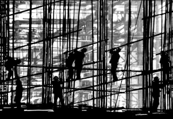 “工地序曲”,1983年,获山东化工行业职工摄影比赛一等奖