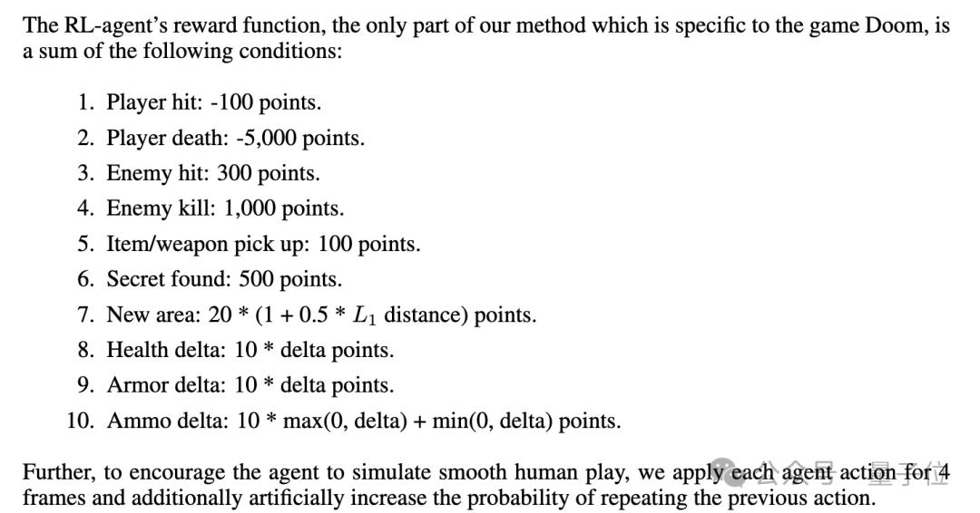 为生成尽可能贴近人类游戏行为的训练数据,研究人员设计了一个简单的、特定于环境的奖励函数,根据一系列特定的游戏情况来分配分数,条件包括: