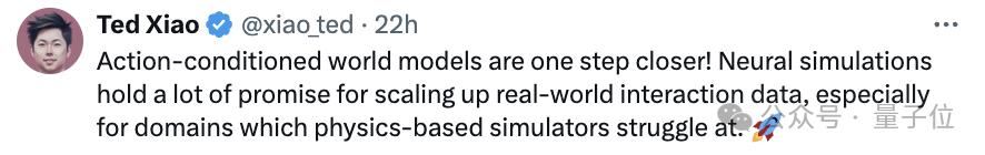 动作条件化的世界模型已更进一步!神经网络模拟在扩展实际交互数据方面具有巨大潜力,特别是在物理模拟器表现不佳的领域。