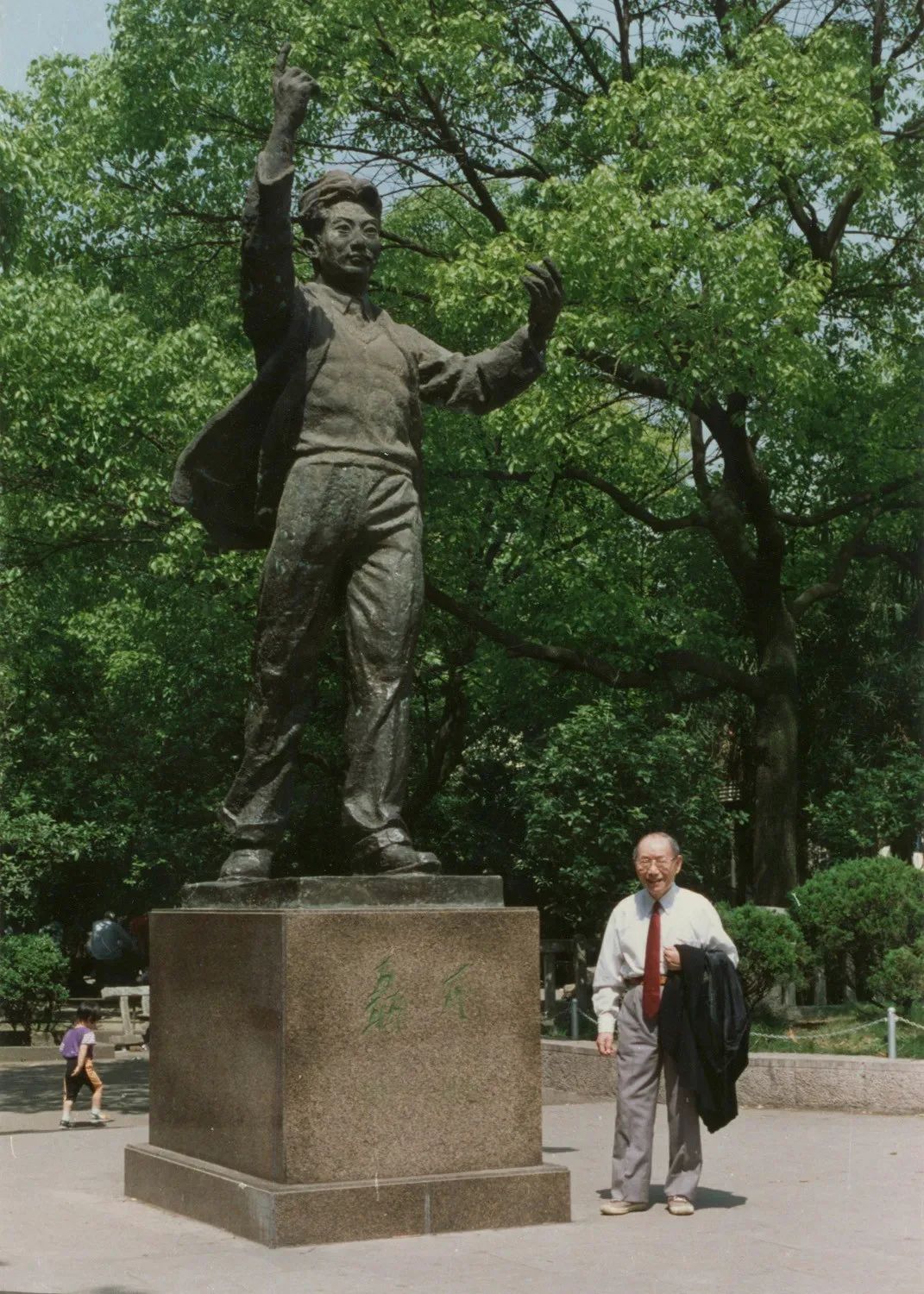 张充仁在聂耳全身铜像前留影张充仁由衷地敬佩邓小平同志,他把比自己大三岁且早十年赴欧留学的“邓公”当作“老学长”。他说:“如果没有邓小平的改革开放政策,就没有今天的张充仁。”1993年6月至9月、1994年5月至7月,已耄耋之年的他,两次返回上海,怀着无比崇敬的心情为邓小平同志塑像,整整工作了七个月,完成了夙愿。1995年,这尊邓小平同志半身铜像送到北京。邓小平同志一家见了,一致给予高度评价,卓琳称:“雕塑塑得很像,非常传神。”