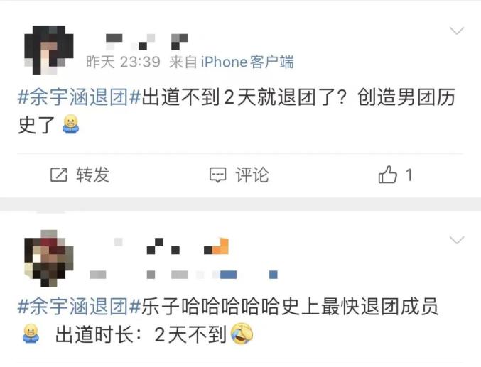 原标题:《官宣!艺人余宇涵退团,出道不足2天》