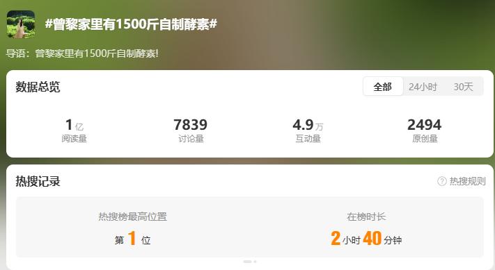 成都商报向上滑动看下一个原标题:《热搜第一!女星曾黎自曝家中有1500斤自制酵素,网友:震惊》