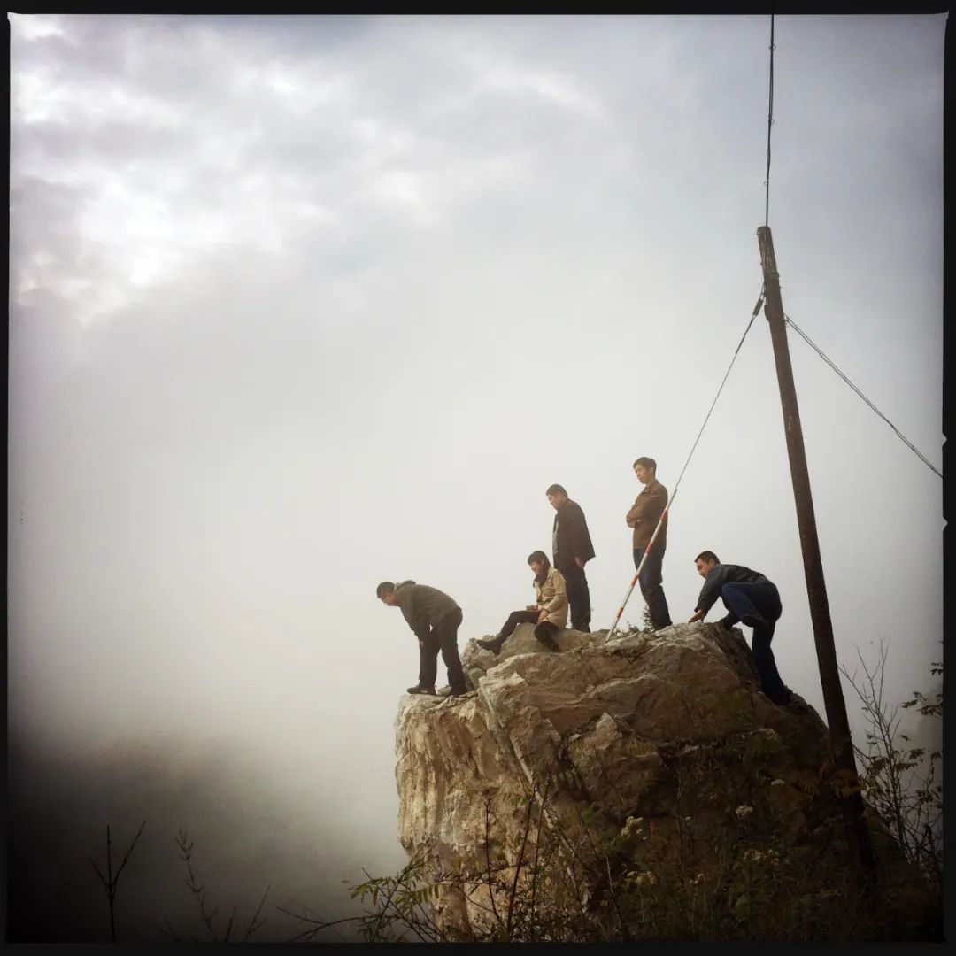 商洛(陕西)- 2014年10月19日,镇安县, 塔云山上,一群人爬上巨石看云雾中的风景。拾城 王警