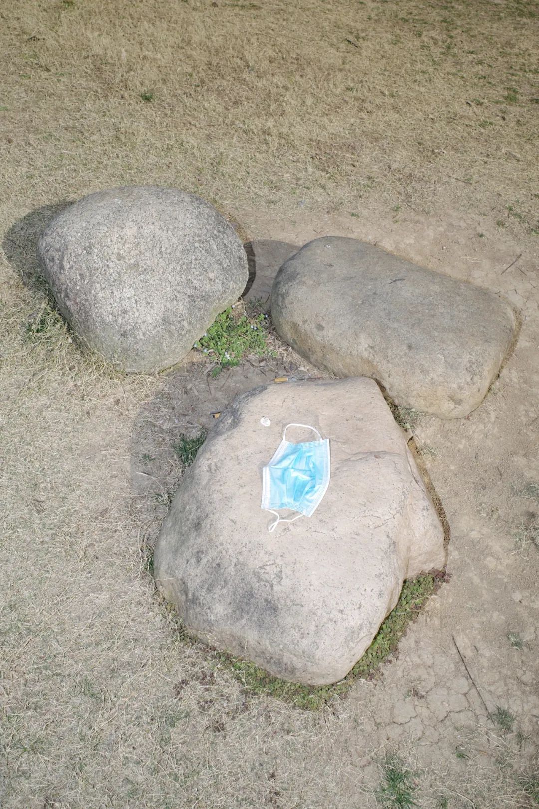合肥(安徽)-2022年3月10日,天鹅湖公园里一块“戴口罩”的石头。拾城 张良弓