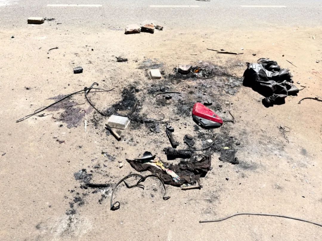 内罗毕(肯尼亚)-2023年12月8日,一名小偷被群众用石块投掷并烧死,尸体被警察抬走后散落的物件。拾城 武晓慧