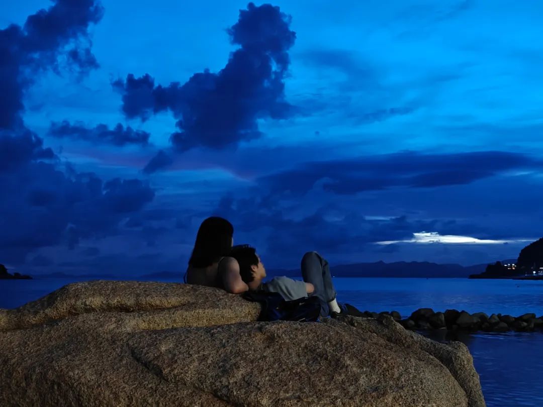 台山(广东)- 2024年7月24日,海边礁石上的情侣。拾城 陈冲