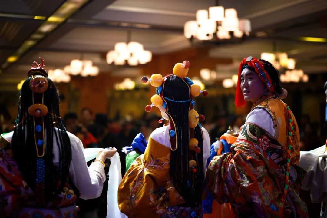 玉树(青海)- 2024年8月17日,婚礼现场,新娘头上戴着玉石。拾城 田卫涛