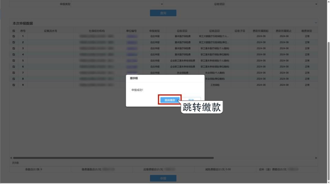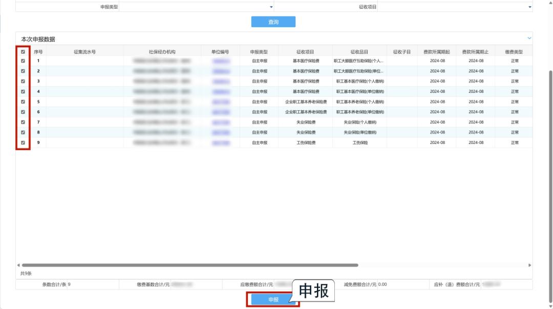 温馨提示:用人单位可分险种进行申报缴费,但同属期同一险种的单位部分和个人部分需同时申报。