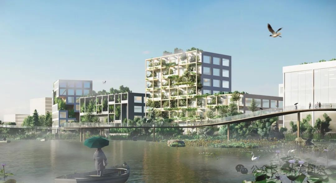 西岑科创园把城市水岸和公共建筑作为公共枢纽(效果图)