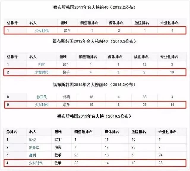 少女时代成员“团体致富”不是没有原因的,2011年-2015年少女时代均位于福布斯韩国名人榜前十名。分到个人手里,肯定也不少。