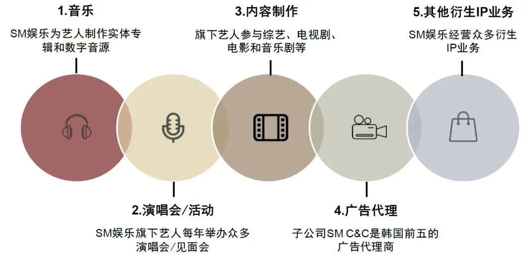 “地基”铺好了,然后通过音乐、演唱会活动、内容制作、广告代理、IP衍生品等5个环节,收钱即可。