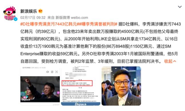 2023年2月16日,侄子李成洙直接在视频中罗列李秀满的”黑料“。说他涉嫌贪污公司7443亿韩元(约39亿元人民币),还曾被判刑过。