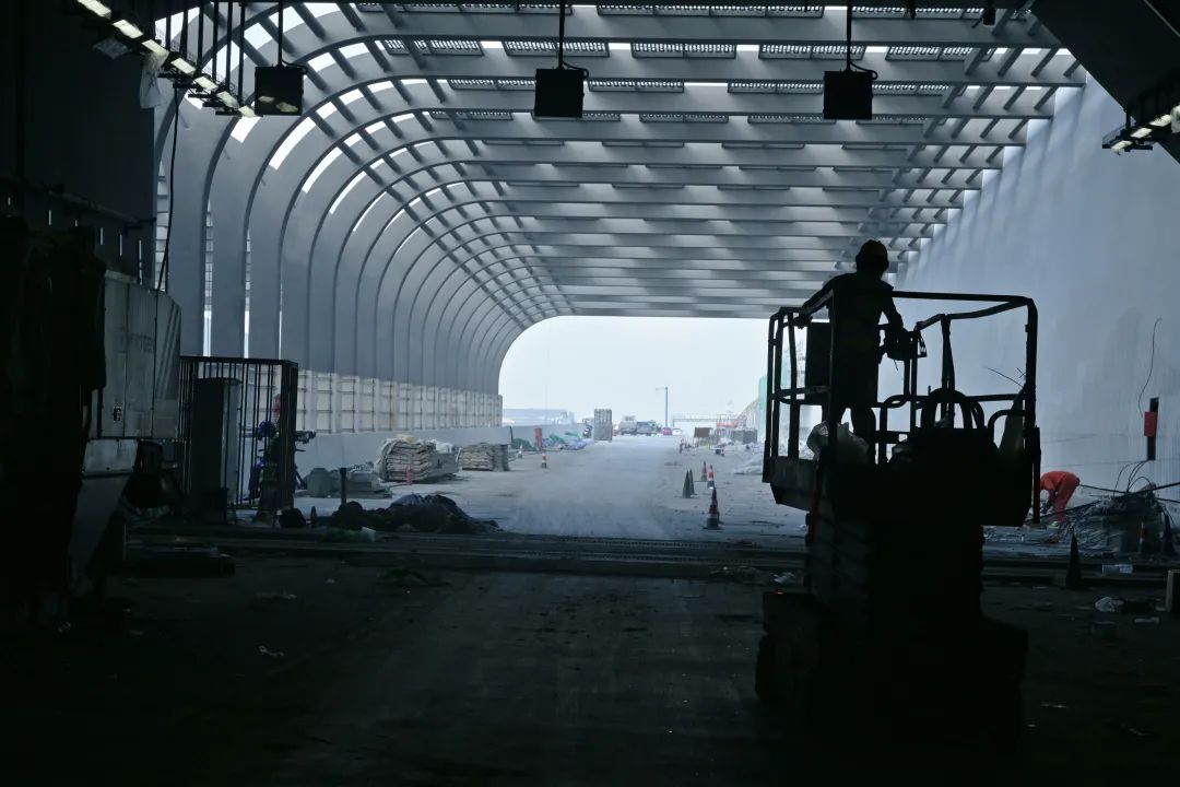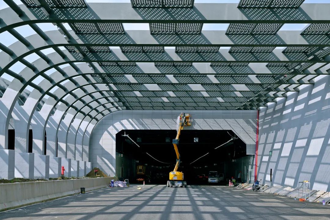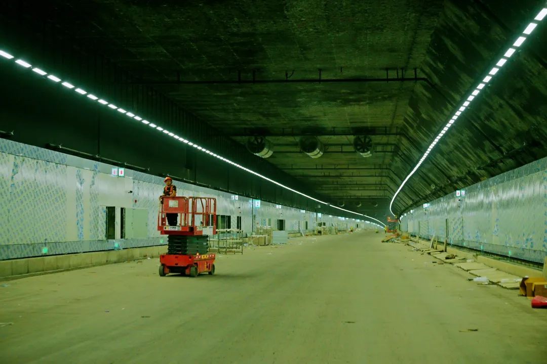 净高8.35米,两条智能无极变光灯带沿着隧道顶部延伸,照亮隧道空间,却丝毫不炫光,陶瓷钢板一节节沿墙壁铺设,每隔40米设置消火栓,20米设泡沫喷淋系统,醒目的安全通道和消防标识等温馨提示镶嵌在隧道墙壁上,给驾驶者满满的科技感和安全感。联!