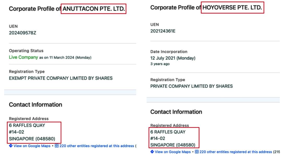 有列文虎克网友发现,Anuttacon的注册地与米哈游新加坡总部Hoyoverse在同一个地址。