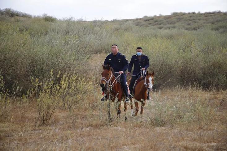 初秋时节,每当走在乌力吉木仁苏木国家沙化土地封禁保护区的山间小路上总能听到马蹄声,这阵阵马蹄声来自该苏木综合行政执法局马背上的巡护队。每天早晨,巡护队都迎着清凉的秋风骑着马儿在崎岖的山路上巡逻,守护着这片土地。扎鲁特旗南部地处科尔沁沙地西北边缘,乌力吉木仁苏木沙带多为流动沙丘,风大沙多,风灾、旱灾等自然灾害频繁,严重影响了周边村屯的正常生产生活。2015年,为稳沙、固沙,改善和优化生态环境质量,扎鲁特旗采取“全面封禁,严格保护”的措施,将23万亩沙带划为封禁保护区,并通过在适宜人工治理的地方积极进行造林营林,重建和恢复荒漠生态系统;在适宜自然恢复的地方充分借助大自然的自我修复功能保护和恢复植被,以保持沙地生态系统的稳定性,遏制沙化土地进一步扩展。目前,该保护区内已种植生物沙障300余亩,樟子松3000多亩。