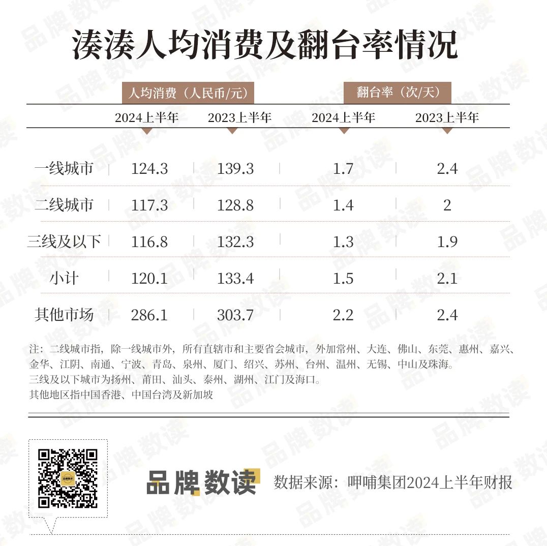此外,2024上半年集团关闭48家呷哺呷哺、23家凑凑及共计7家趁烧,但也未能有效提振翻台率。