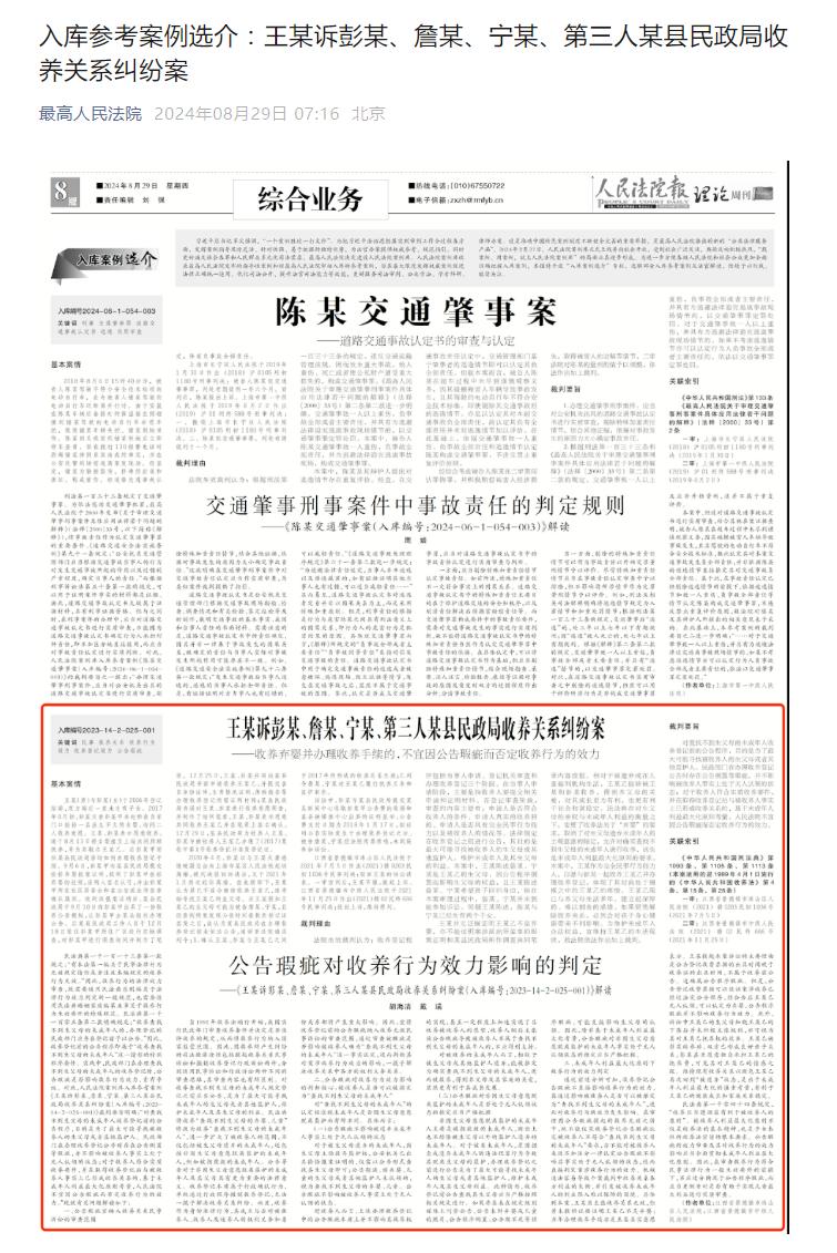 公告瑕疵对收养行为效力影响的判定——《王某诉彭某、詹某、宁某、第三人某县民政局收养关系纠纷案(入库编号:2023-14-2-025-001)》解读