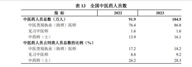 我国中医药卫生人员总数达104.5万人!《2023年我国卫生健康事业发展统计公报》发布