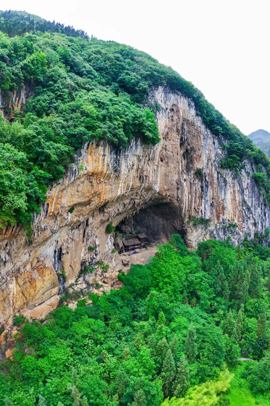 盘县大洞位于半山腰上。盘县大洞离地面高达三十余米,有五条大小不同的洞道,洞内也非常平整。于是,这里向来“人烟旺盛”,建起过佛寺亭阁,住过几户人家,是抵御战乱的堡垒,也当过加工硝石的“工厂”……但这处岩洞最震撼的身份,则是——