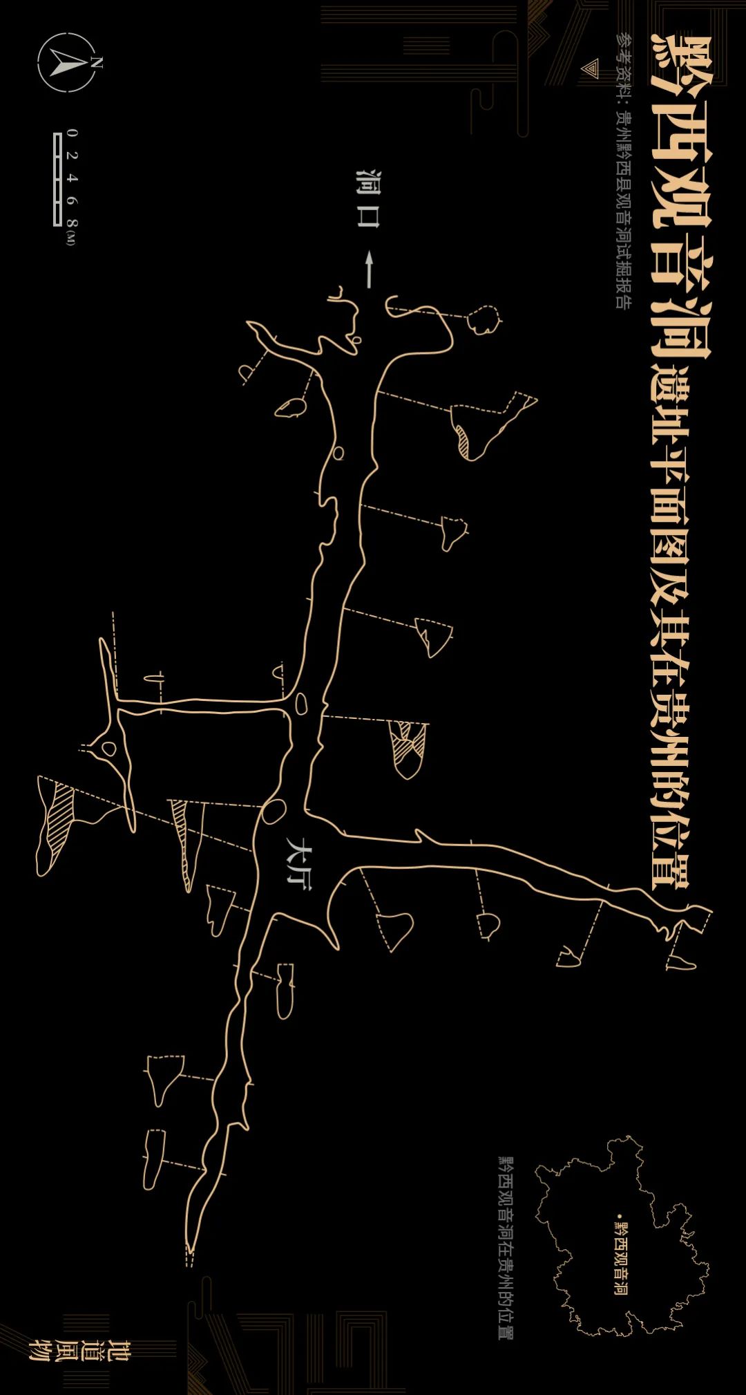 黔西观音洞遗址平面图及其在贵州的位置。制图/鱼一条