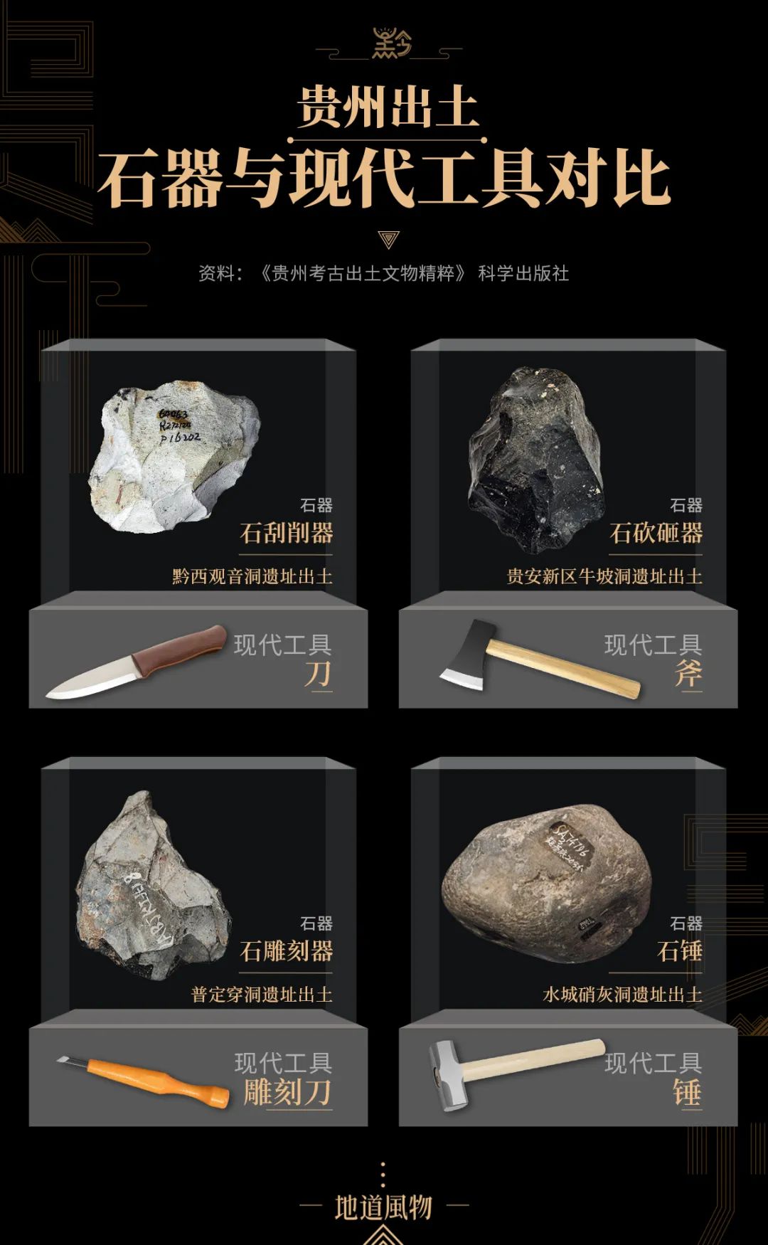 贵州出土石器与现代工具对比。制图/九阳
