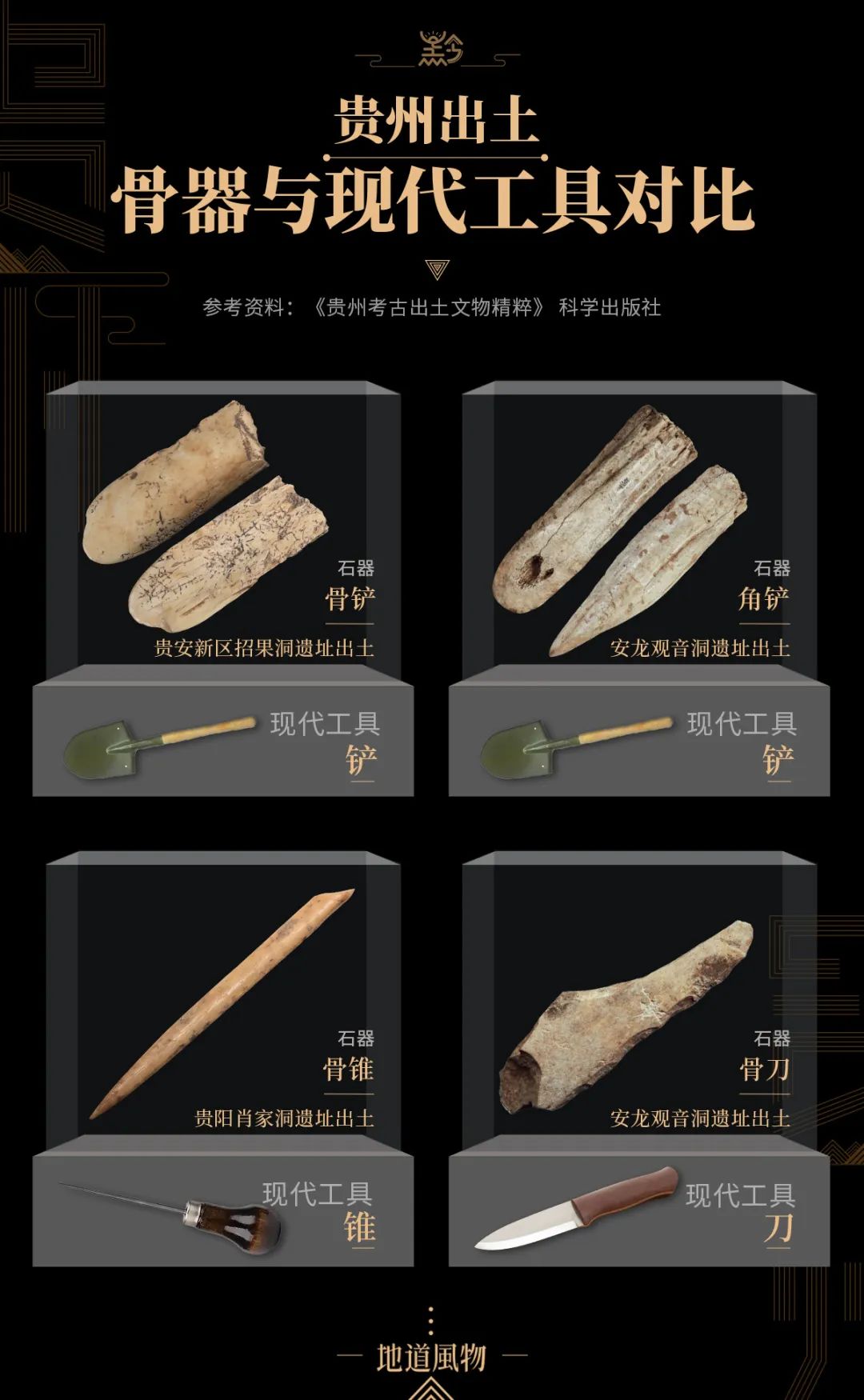 贵州出土骨器与现代工具对比。制图/九阳